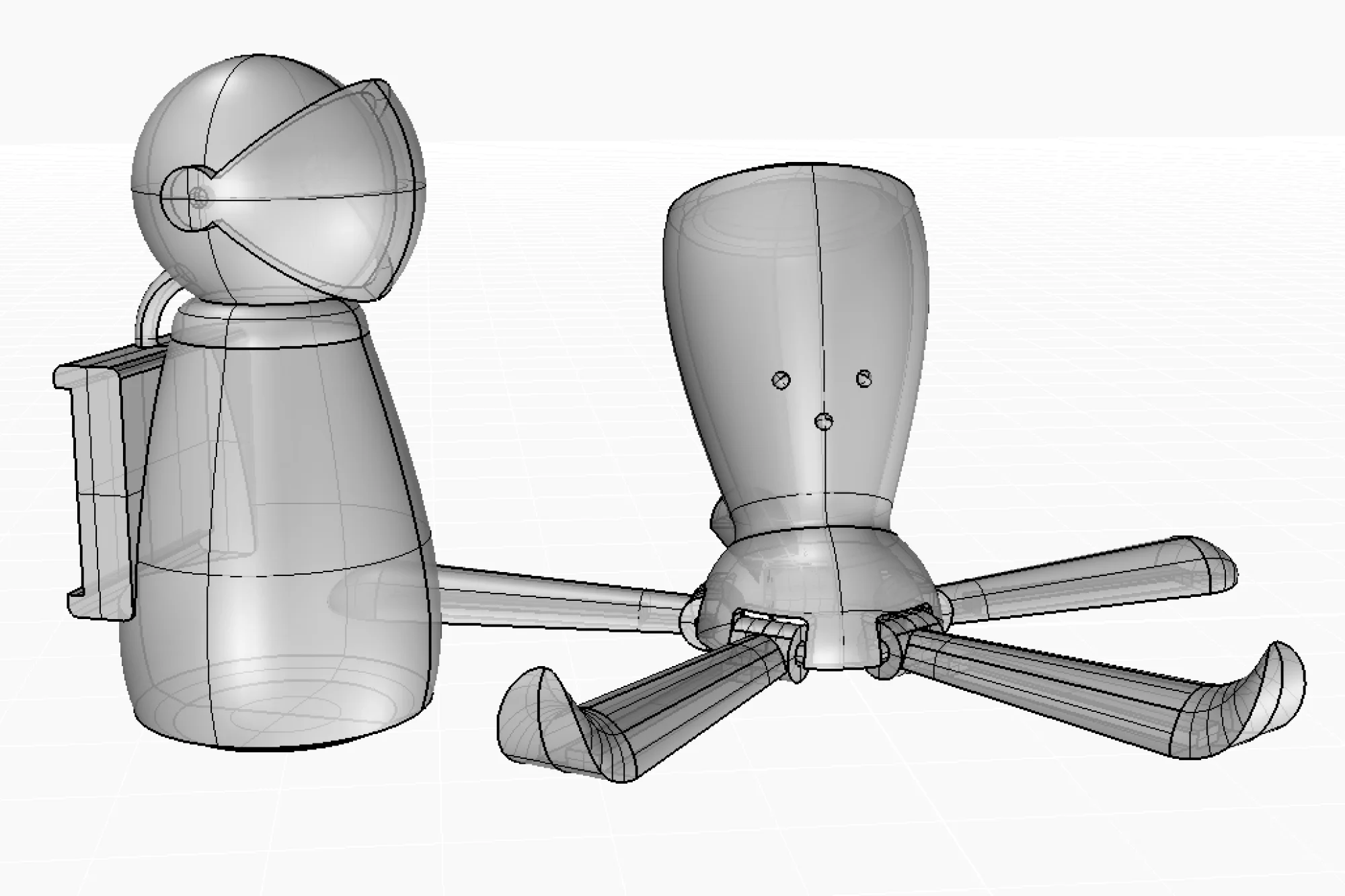In later stages of development, children expressed a need for exploration and showcased a behavior that teetered between dependence and independence. For this group I developed Hêroe. A refillable sunscreen bottle, the shape is directly related to the dialogue with the kids and the observation of character gestalt in researched toys. Its shape is a combined abstraction of an astronaut and a deep-sea diver.